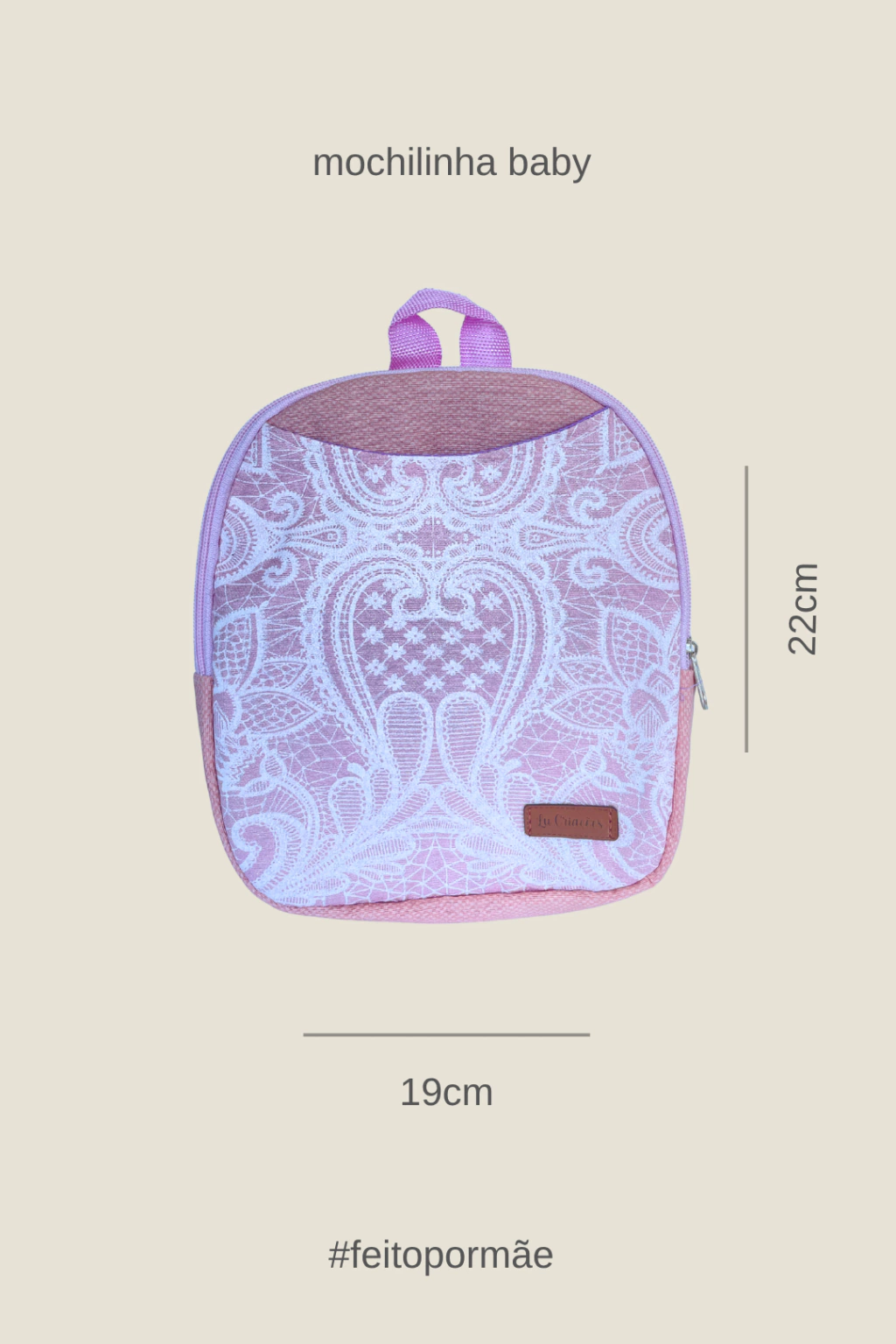A mochilinha Baby é feita pela costureira Lucivan, mãe da Marina, fundadora da Mariá.
